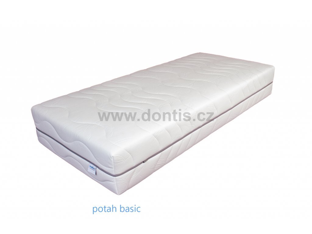 Basic - Potah je plošně prošitý PES rounem 200 gr/m2. Složení látky 37%Ba/ 63% PES. Potah je pratelný na 60ºC. Potah je příjemný na omak a výborně absorbuje vlhkost. (↨ 21 cm)