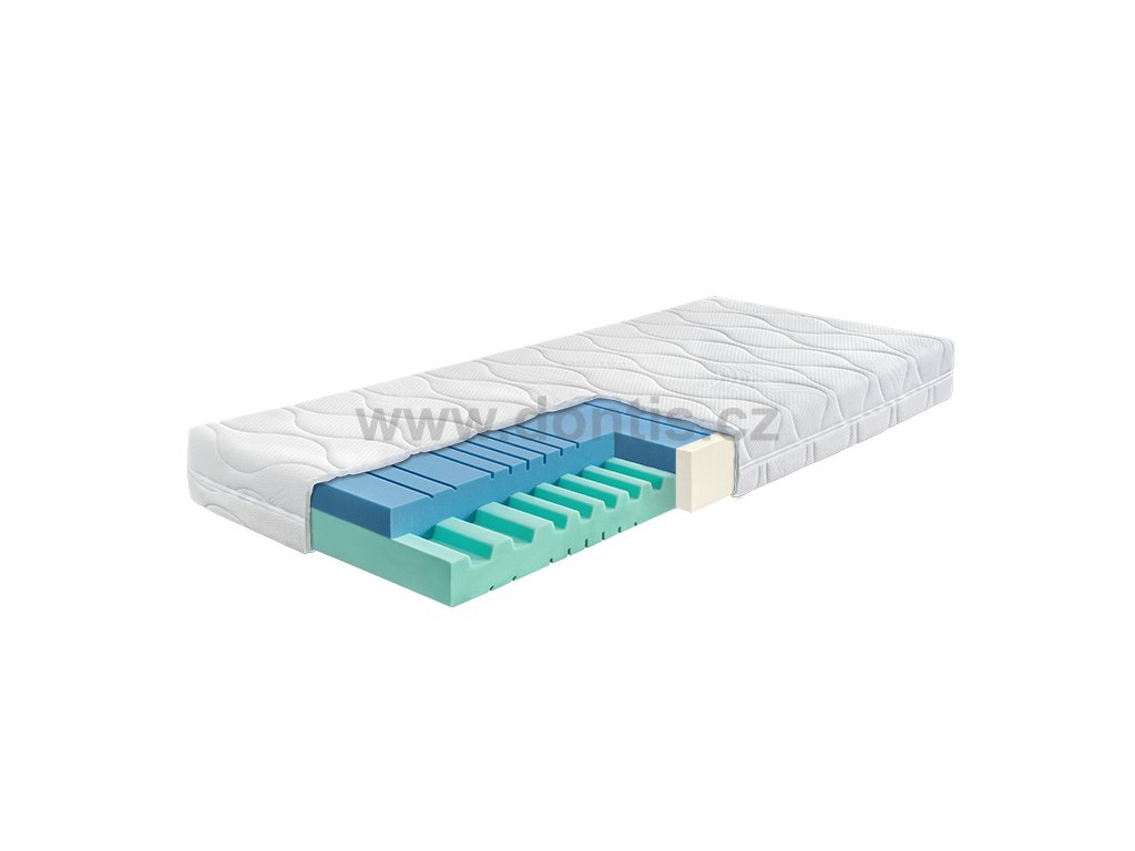 Středně tuhá, 18 cm vysoká matrace vyrobená z hybridních pěn, které se vyznačuje svojí pevností a pružností, dobrou cirkulací vzduchu, schopností udržet optimální teplotu těla.