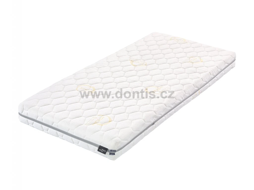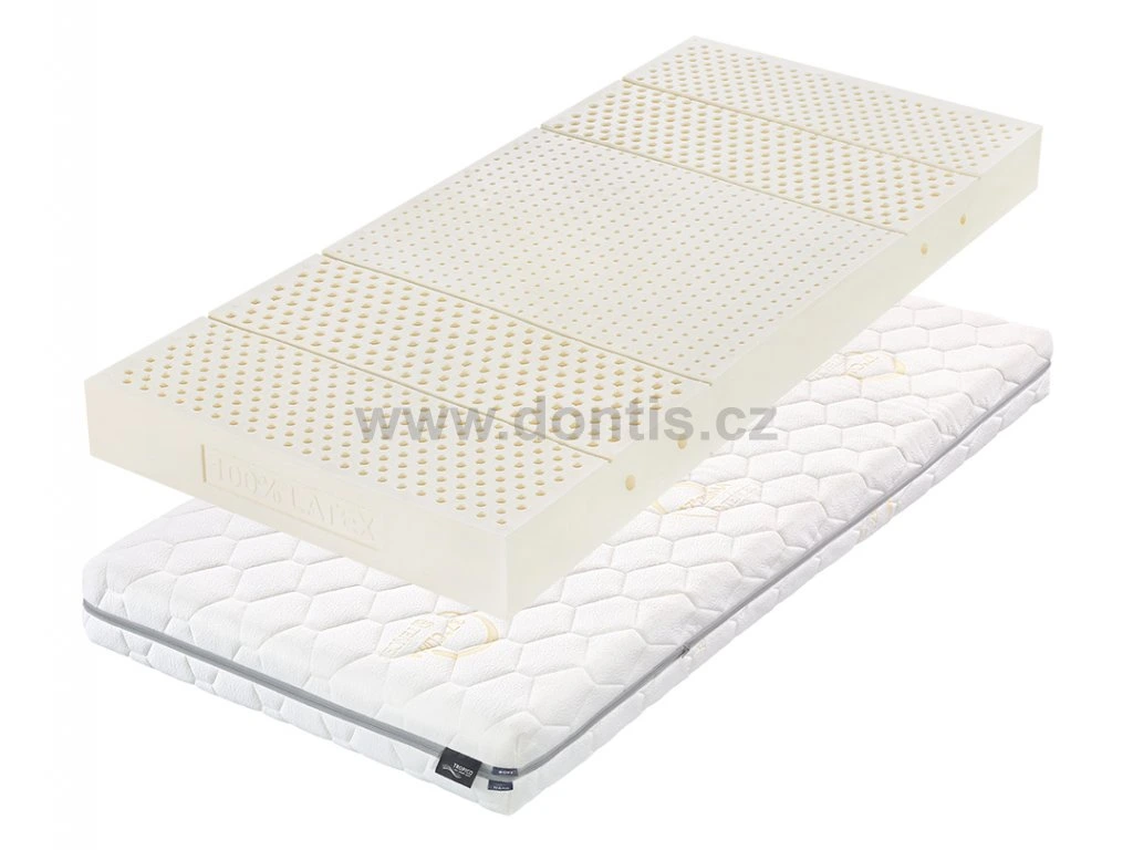 Téměř nezničitelné ortopedické jádro z jednoho kusu latexu z přírodních surovin s objemovou hmotnostíb 60 kg/m3. Díky perforacím je prodyšné a má 5 anatomických zón.