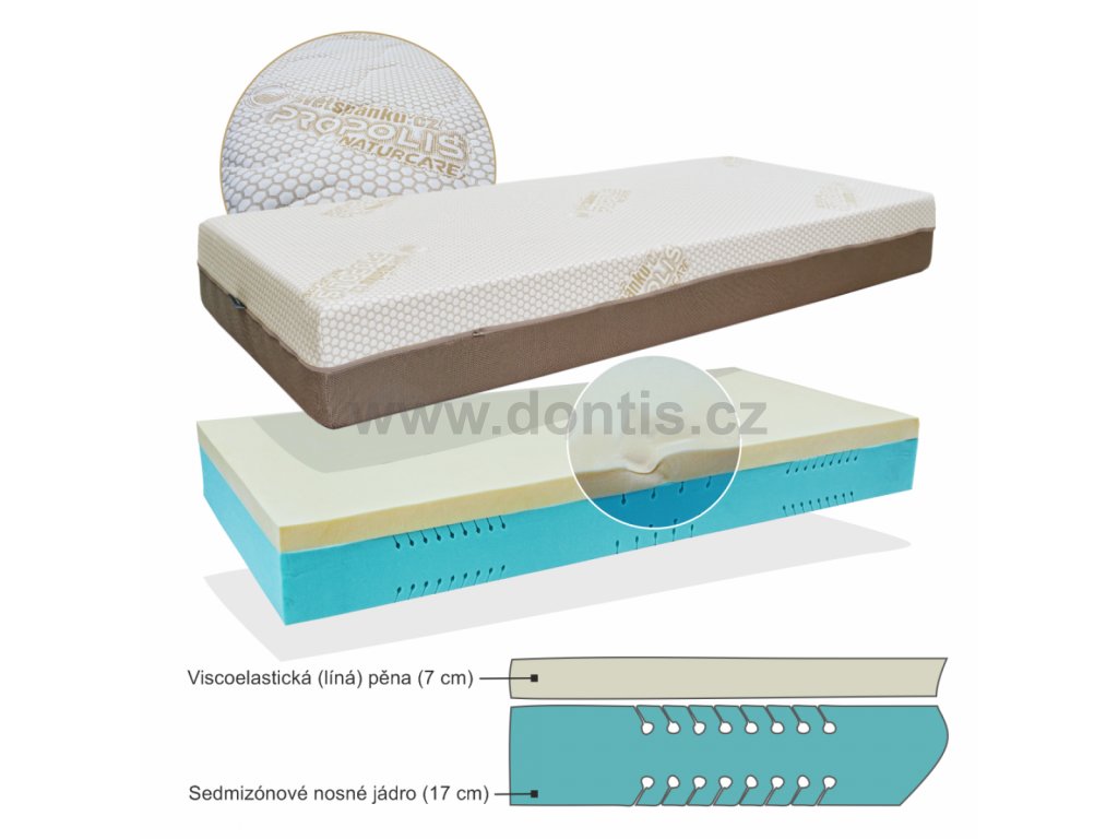 Potah obsahuje přírodní úpravu z propolisu, což je látka, kterou vytvářejí včely a slouží jako základní stavební prvek včelích úlů, kde se díky němu nemnoží mikroorganismy, byť je tam tma a vlhko, což je podobné i mikroklima potahu matrace.