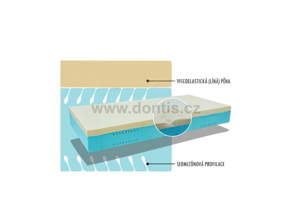 - Viscoelastická pěna reaguje jak na tlak, tak na tělesnou teplotu a dokáže tak při spánku uvolňovat svalstvo.