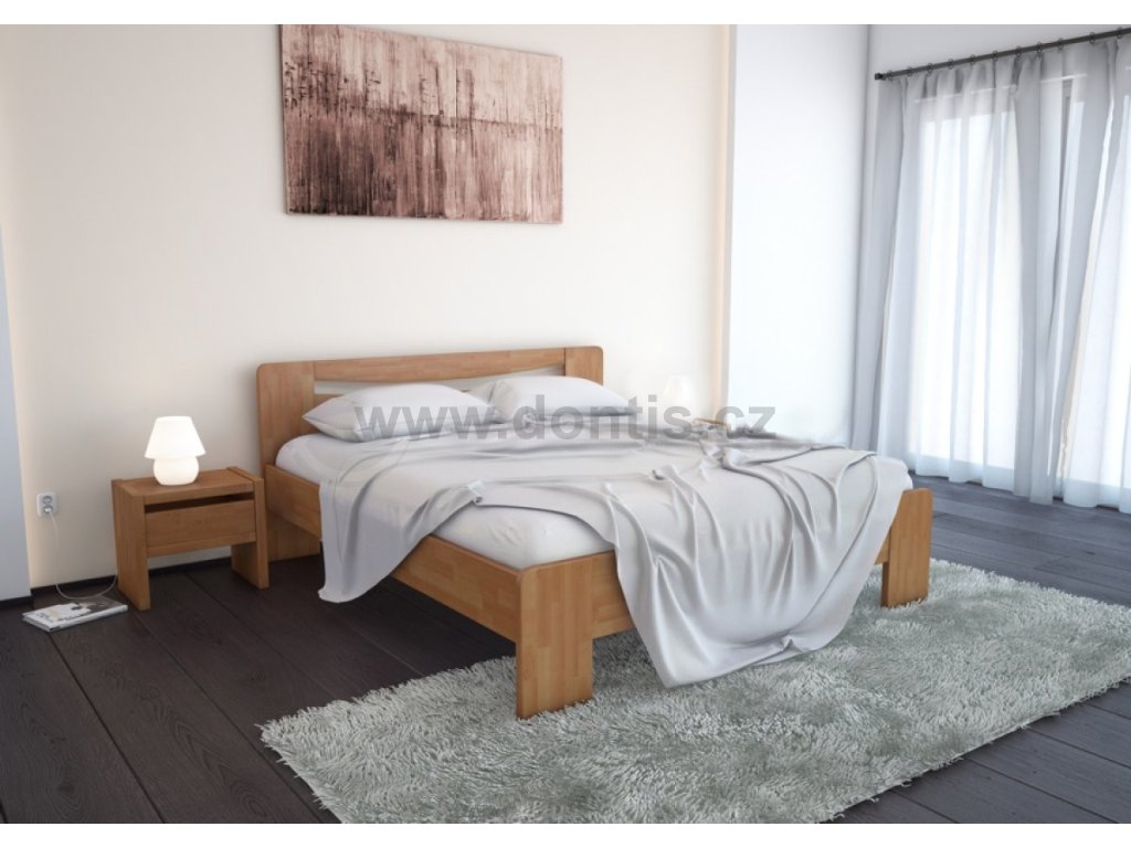 - Na eleganci tato postel z masivu získává především zaoblením rohů a stylovým výřezem v čele u hlavy.