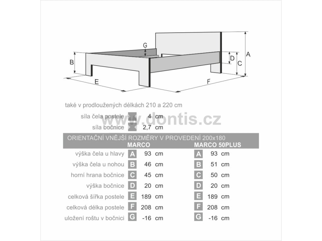 - Možnost dodání prodloužené varianty 210 cm (příplatek +5%) nebo 220 cm (příplatek +10%).