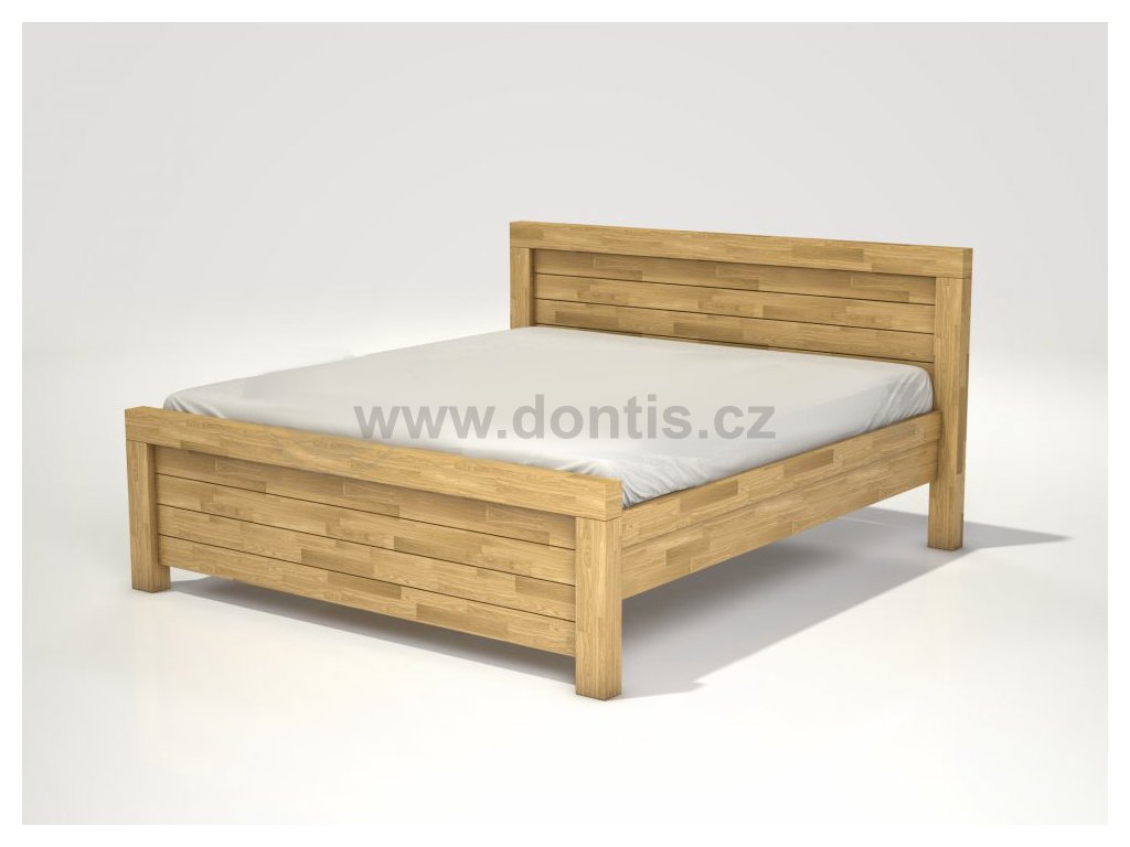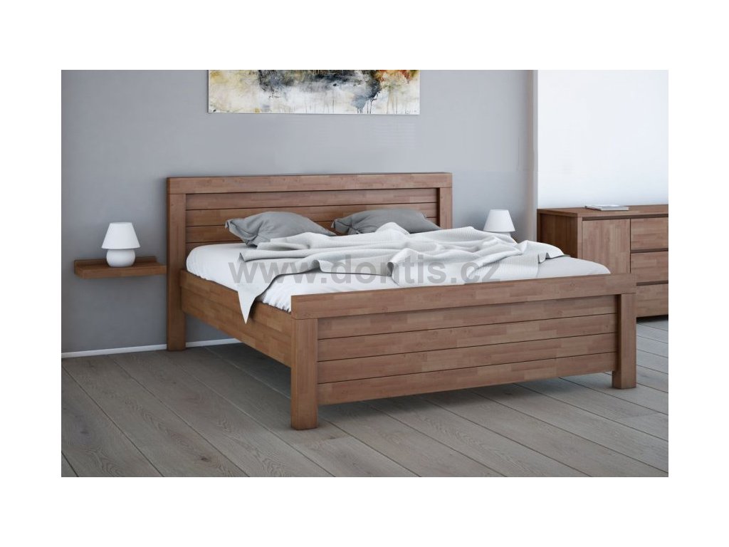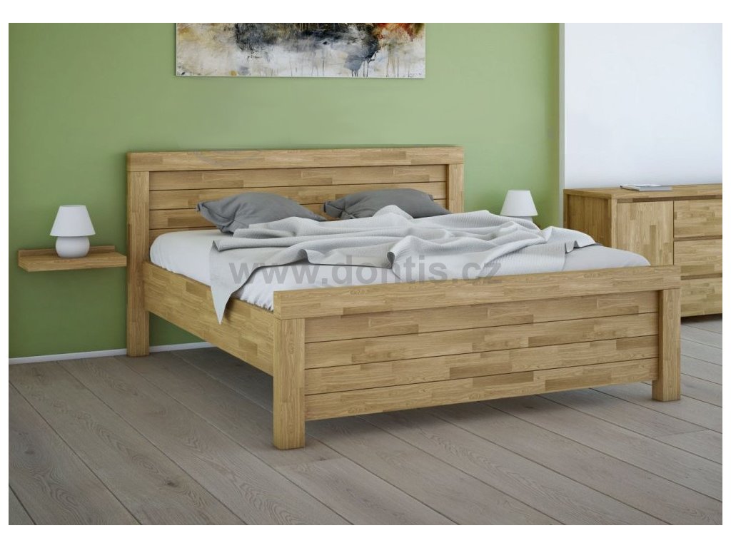 - Kvalitní zvýšená dřevěná robustní postel z masivu se zvýšeným čelem u nohou.